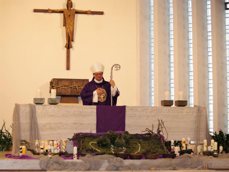 Die Zusammenarbeit und das Wissen, Gott begleitet und führt uns in die neue Zukunft, mögen uns bereichern. Unsere Ängste und Zweifel dürfen wir in Gottes Hand legen. Das ist nicht einfach und daher ist das Vernetzen untereinander nötig. Wir können einander beistehen und unterstützen, damit wir uns nicht alleine fühlen. Der Bischof wünschte uns Durchhaltewillen, gute Nerven, Humor und den Glauben. Niemand geht allein, Gott ist mit allen! Das zeigte auch die Dekoration in der Kirche.
