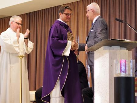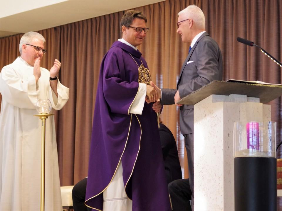 Bischof Felix fand, dass die Errichtung eines Pastoralraumes schon etwas Technisches sei. Deshalb lud Bischof Felix Gmür die Gottesdienstgemeinschaft ein, zuvor das Glaubensbekenntnis gemeinsam zu beten. Denn der gemeinsame Glaube soll das Verbindende sein im Leben in diesem Pastoralraum. Und dann sprach der Bischof die historisch bedeutenden Worte: «Und so errichte ich, kraft meines Amtes als Bischof von Basel, den Pastoralraum Thurtal-Seerücken-Untersee mit den Pfarreien St.Mauritius Gündelhart, Peter und Paul Homburg, St.Bartholomäus Pfyn und St. Jakobus der Ältere Steckborn. Ich ernenne Thomas Mauchle zum Pastoralraumleiter und zum Gemeindeleiter in allen vier Pfarreien. – So, das wärs schon.» Applaus folgte. Und anschliessend feierte der Bischof mit den Gläubigen die Eucha-ristie.