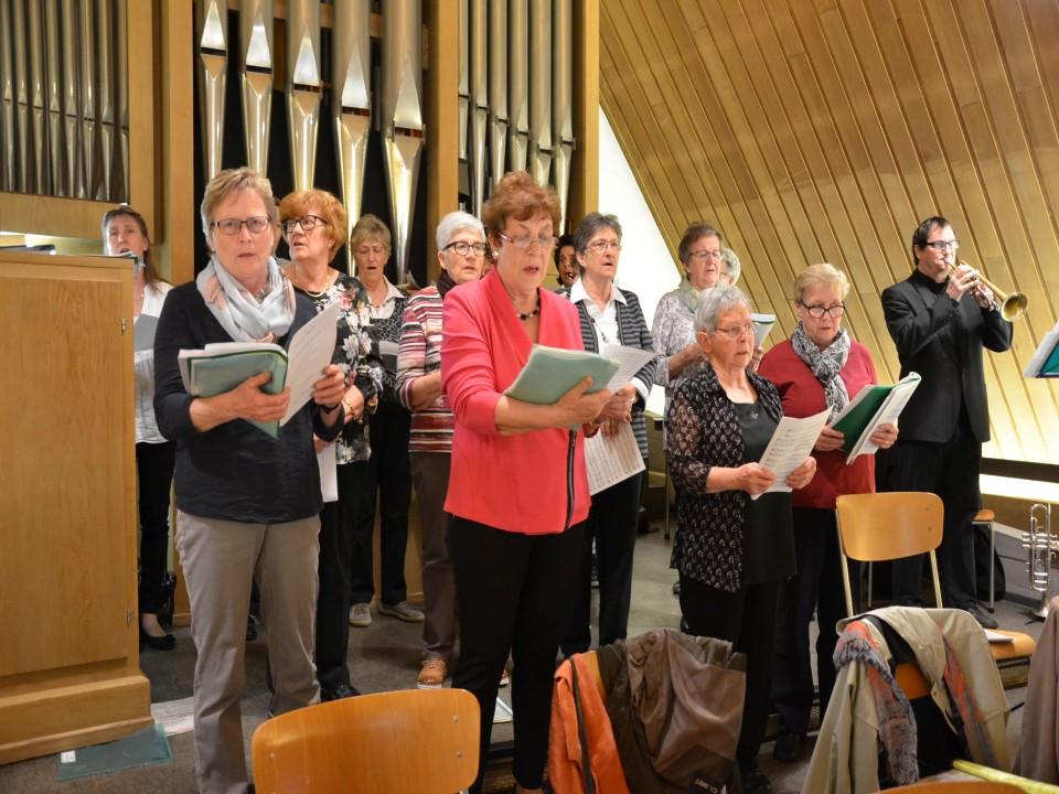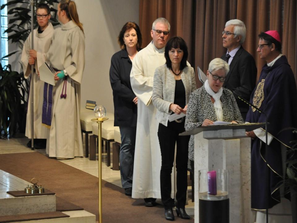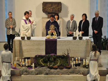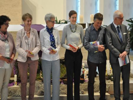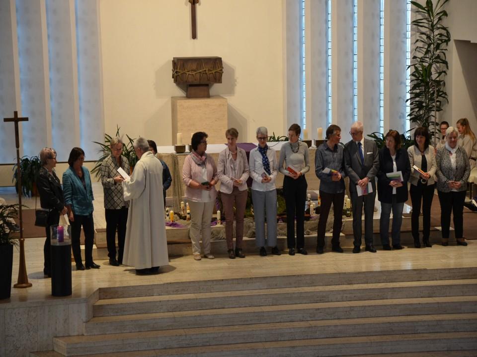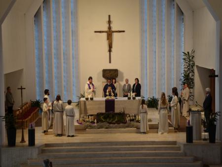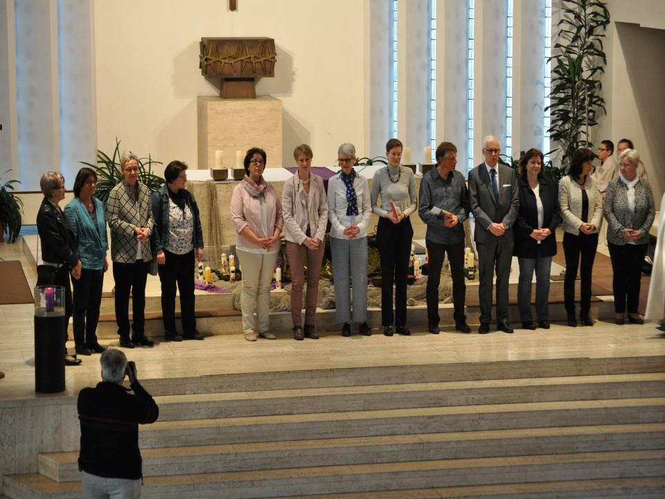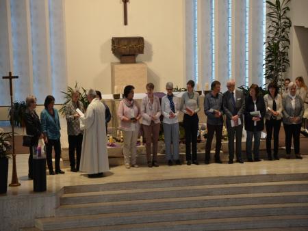 Die Zusammenarbeit und das Wissen, Gott begleitet und führt uns in die neue Zukunft, mögen uns bereichern. Unsere Ängste und Zweifel dürfen wir in Gottes Hand legen. Das ist nicht einfach und daher ist das Vernetzen untereinander nötig. Wir können einander beistehen und unterstützen, damit wir uns nicht alleine fühlen. Der Bischof wünschte uns Durchhaltewillen, gute Nerven, Humor und den Glauben. Niemand geht allein, Gott ist mit allen! Das zeigte auch die Dekoration in der Kirche.
