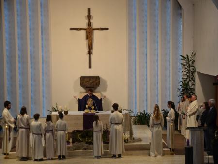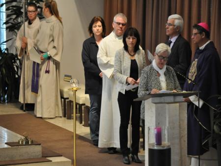 Feierlich, mit Orgel und Trompete, zog Bischof Felix Gmür in die Kirche von Steckborn ein und begrüsste die Pfarreiangehörigen von Steckborn, Gündelhart, Homburg und Pfyn zum Errichtungsgottesdienst. Der gemeinsame Glaube soll das Verbindende sein im Leben in diesem Pastoralraum.
