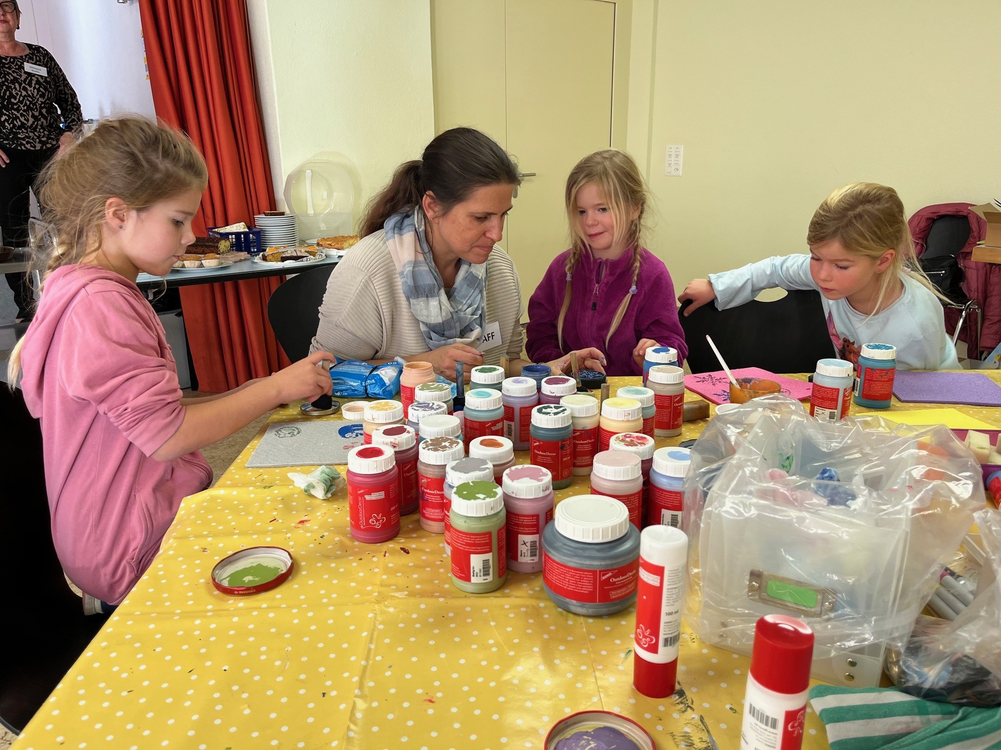 Beim Basteln entstanden unter kundiger Anleitung der Helferinnen die ersten Weihnachtsgeschenke.