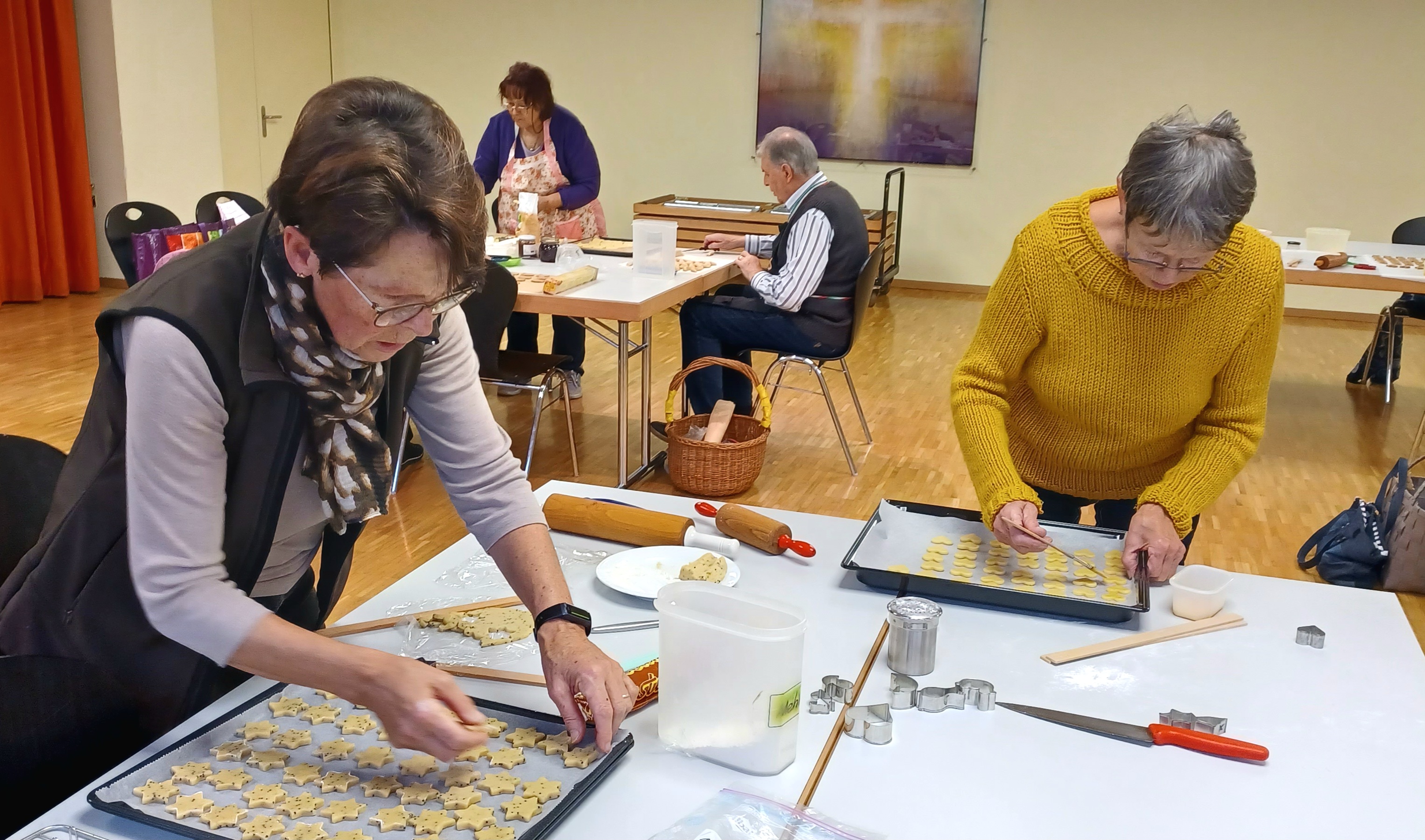 Am 4. Dezember herrschte in der Küche des katholischen Pfarrheims eine besonders einladende Atmosphäre. Eine ansehnliche Gruppe backfreudiger Frauen und Männer traf sich, unter der bewährten Leitung von Elisabeth Frei und Claudia Widmer, um gemeinsam verschiedene Guezli für die Adventszeit zu backen. Schon nach kurzer Zeit erfüllten wohlige Düfte von Vanille, Zimt und Schokolade die Räume und sorgten für echte Vorfreude auf die kommende Weihnachtszeit.