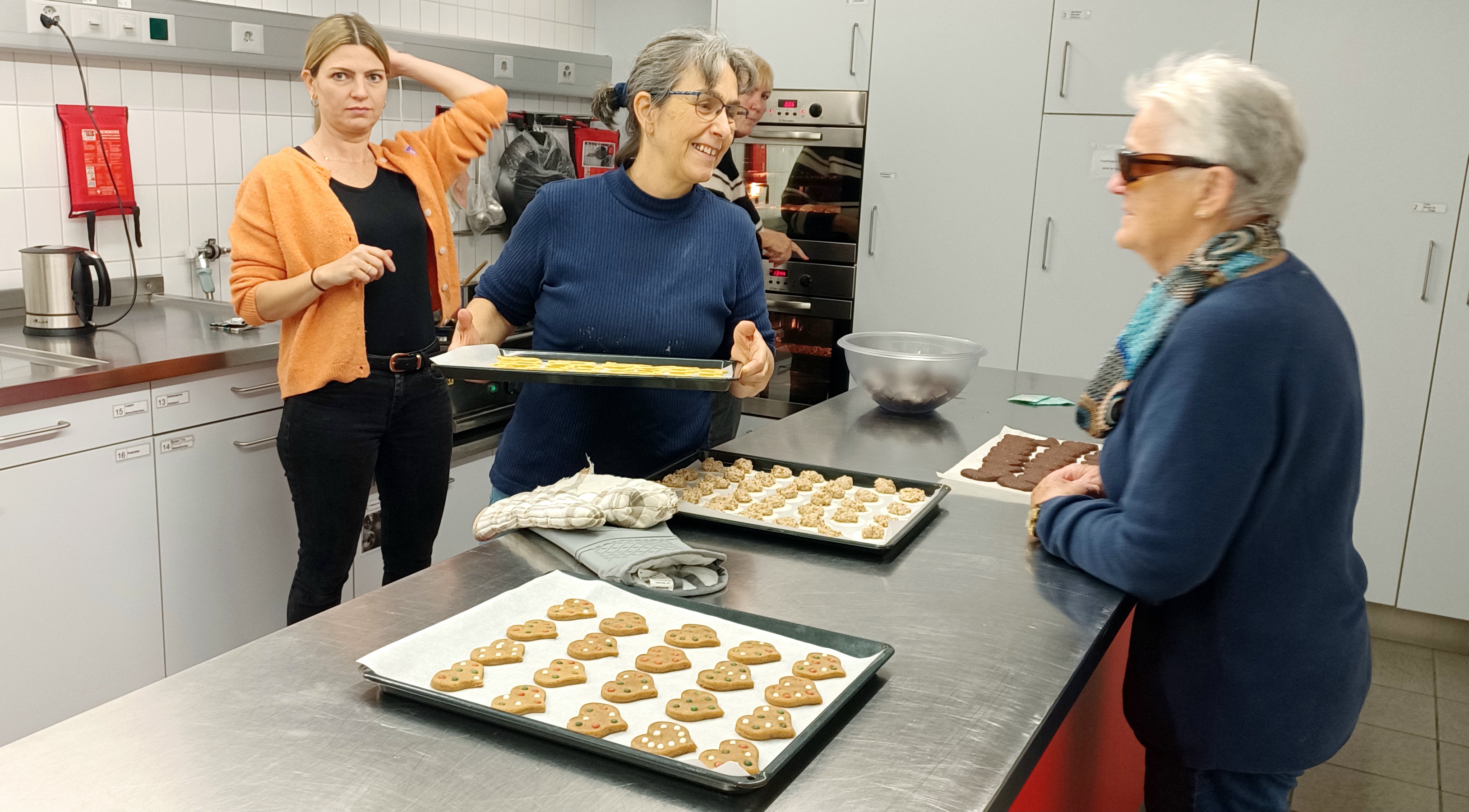 Mit viel Engagement und guter Laune wurden Teige geknetet, Formen ausgestochen und Bleche gefüllt. Dabei blieb genügend Raum für angeregte Gespräche, herzhaftes Lachen und den einen oder anderen kleinen Backtipp, der von erfahrenen Händen weitergegeben wurde. Die Vielfalt der gebackenen Köstlichkeiten reichte von klassischen Mailänderli, hin zu würzigen Zimtsternen, «gluschtigen» Schoggi-Cornflakeshäufchen und vielem mehr.